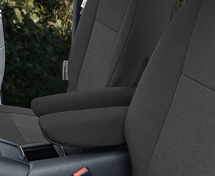 - Pokrowce na fotele kierowcy i pasażera wyposażono w specjalne, zapinane na rzep rozcięcie, umożliwiające prawidłowy montaż również na fotelach wyposażonych w podłokietnik.