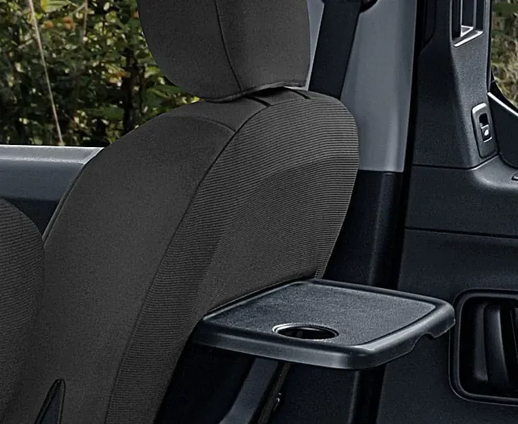 - Konstrukcja pokrowców umożliwia korzystanie z rozkładanych stolików umieszczonych na oparciach przednich foteli.