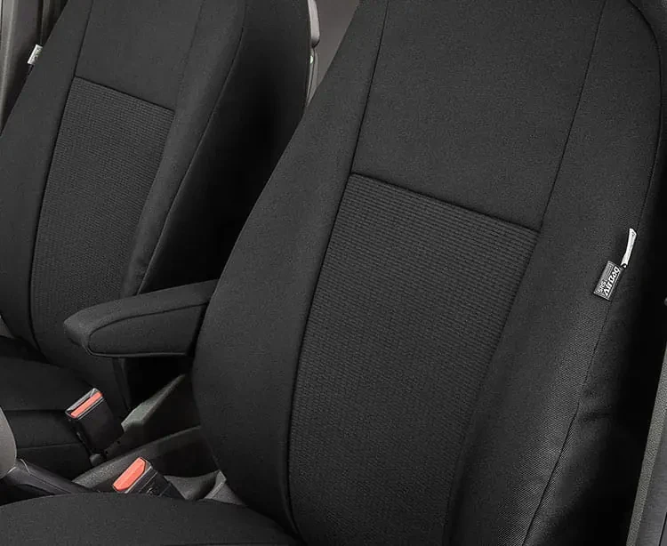- Przy produkcji pokrowców na przednie fotele zastosowana została technologia bezpiecznego szwu, rozrywającego się podczas ewentualnego wybuchu poduszek powietrznych co oznacza, że można bezpiecznie montować je na fotelach wyposażonych w boczne poduszki AirBag.