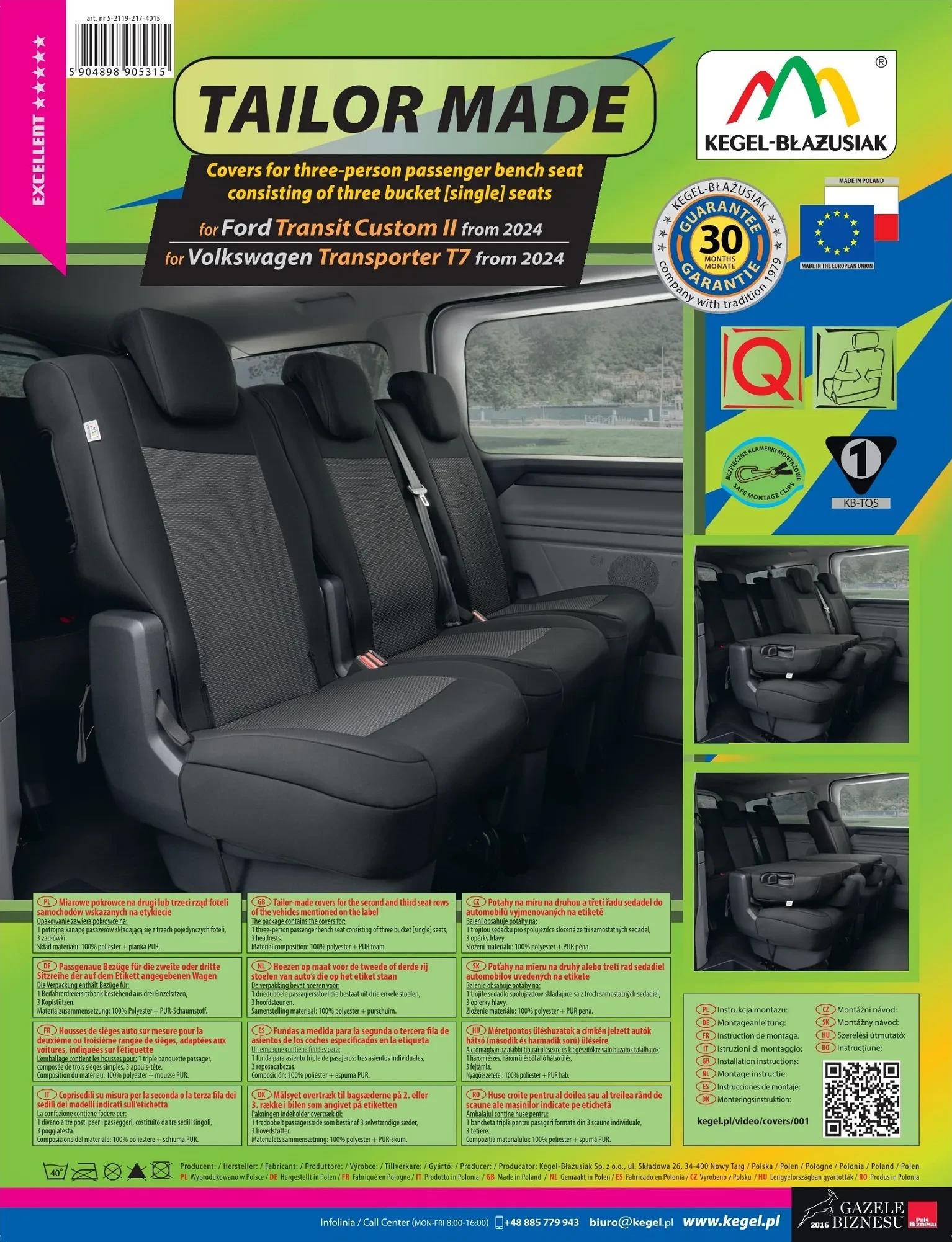 Ford Transit Custom II - Miarowe Pokrowce 1+1+1 na 3-osobową dzieloną kanapę