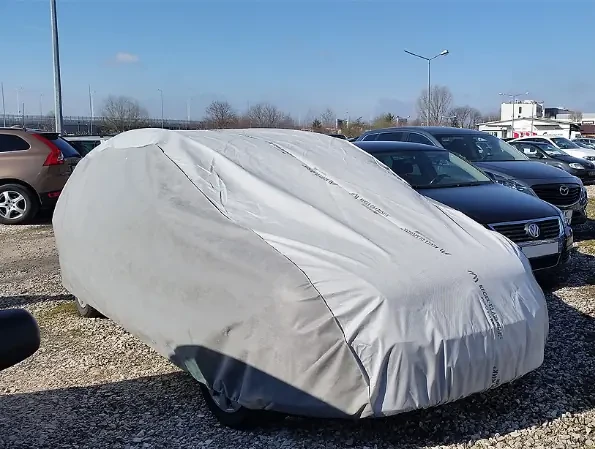 Plandeka bardzo dobrze chroni znajdujący się pod nim samochód przed powodującymi wżery w lakierze ptasimi odchodami. | ||