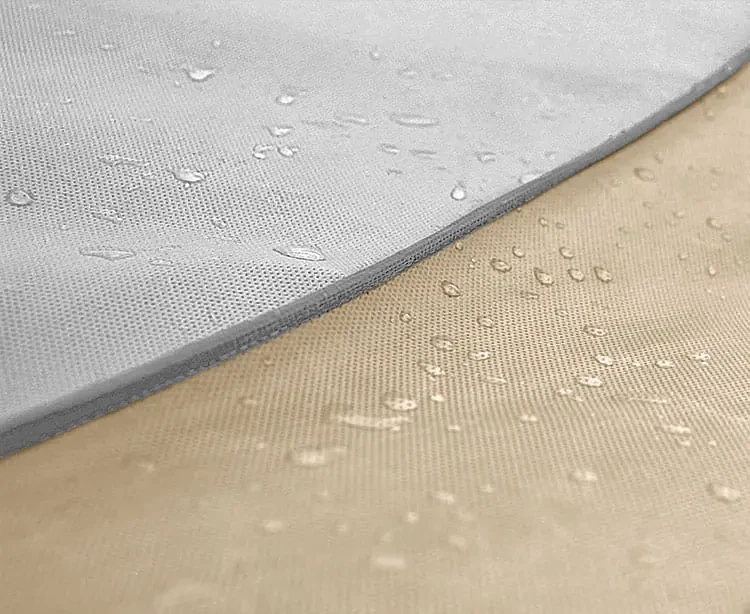 - Górna część pokrowca wykonana jest z warstwowego materiału Spunbond trwale powleczonego polietylenem, dzięki czemu nie nasiąka on wodą i jest całkowicie szczelny.