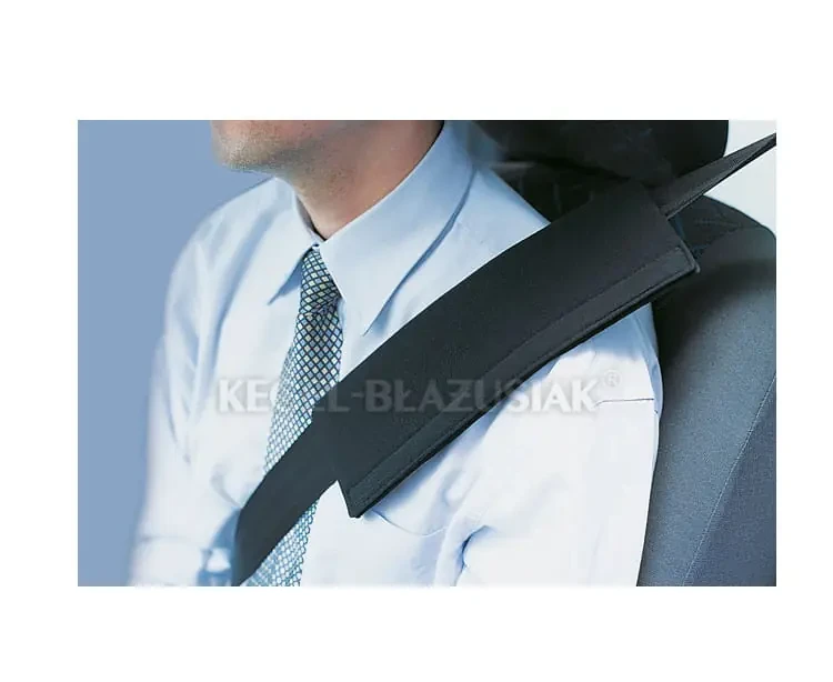 Wygodna poduszka na pas bezpieczeństwa w kolorze czarnym wykonana z dzianiny bawełnianej, podlaminowanej specjalną pianką. Rozmiar uniwersalny - pasuje na każdy pas bezpieczeństwa. Mocowane za pomocą wszytej 'rzepy'.