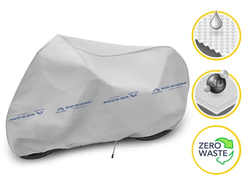 Pokrowiec chroni jednoślad przed wilgocią i deszczem (także kwaśnym). | ||